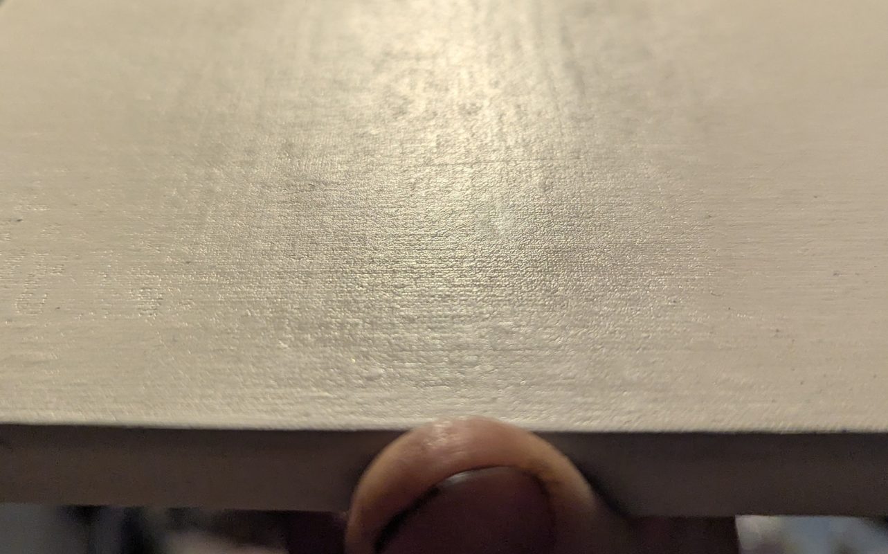 These panels aren’t anything like as rough in comparison to commercial painting boards, but a bit of the warp and weft of the cotton below is present as a fine matrix in the gesso.